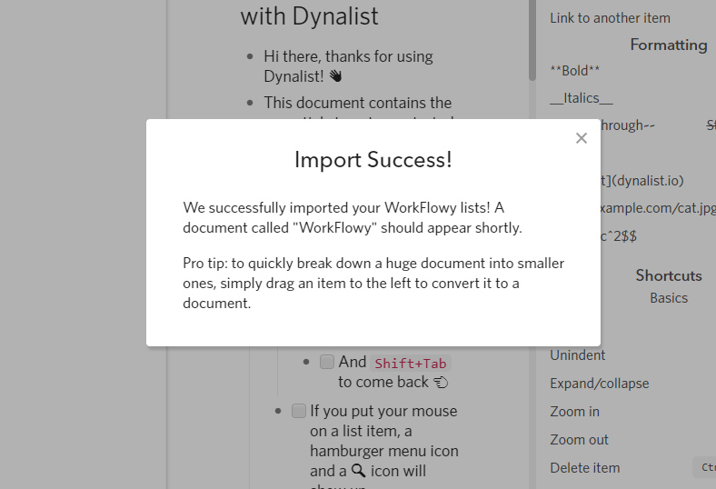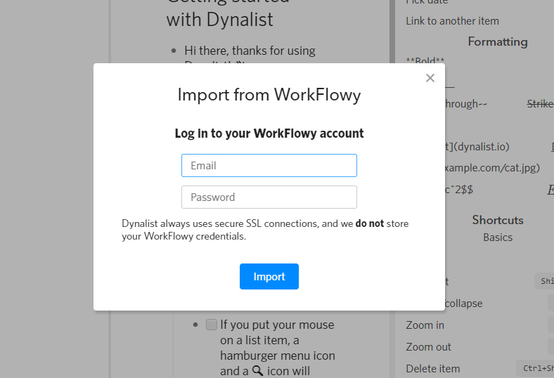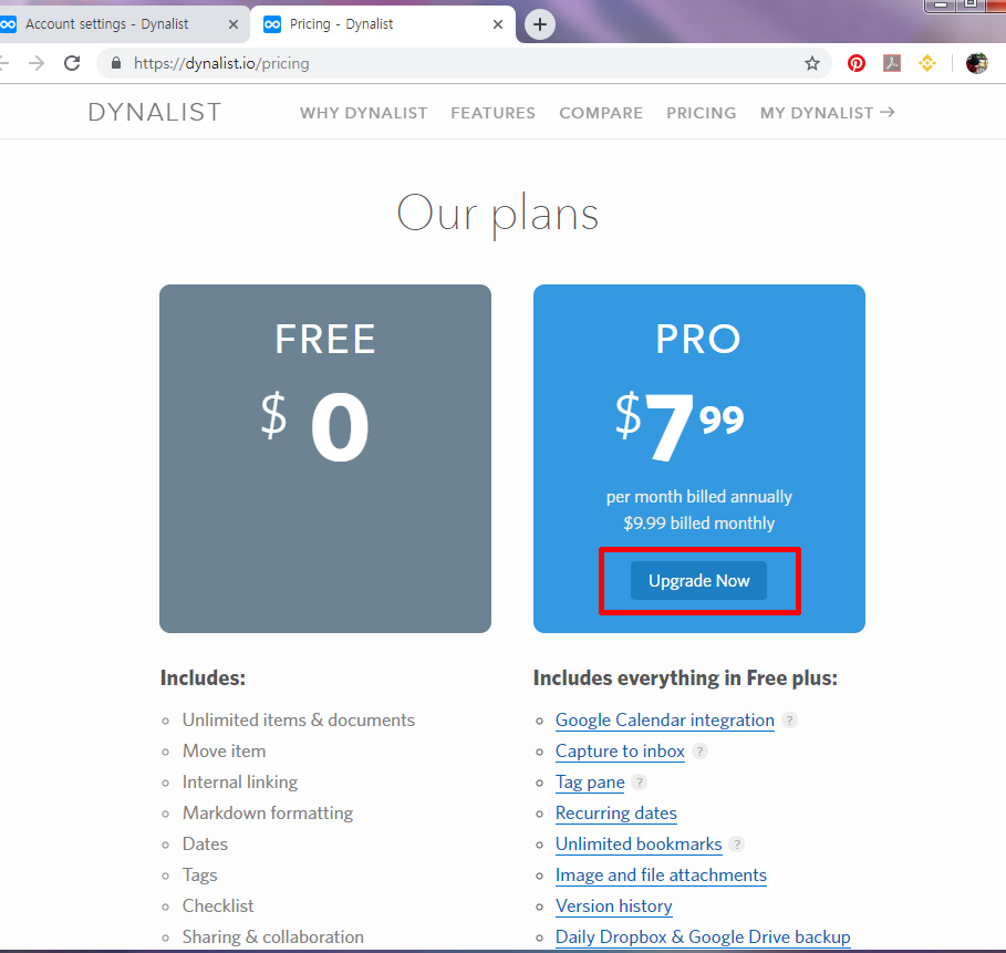 결제를 마쳤습니다. 다행이 dynalist 에는 기존의 workflowy 의 데이터를 가져오는 기능이 있습니다.
