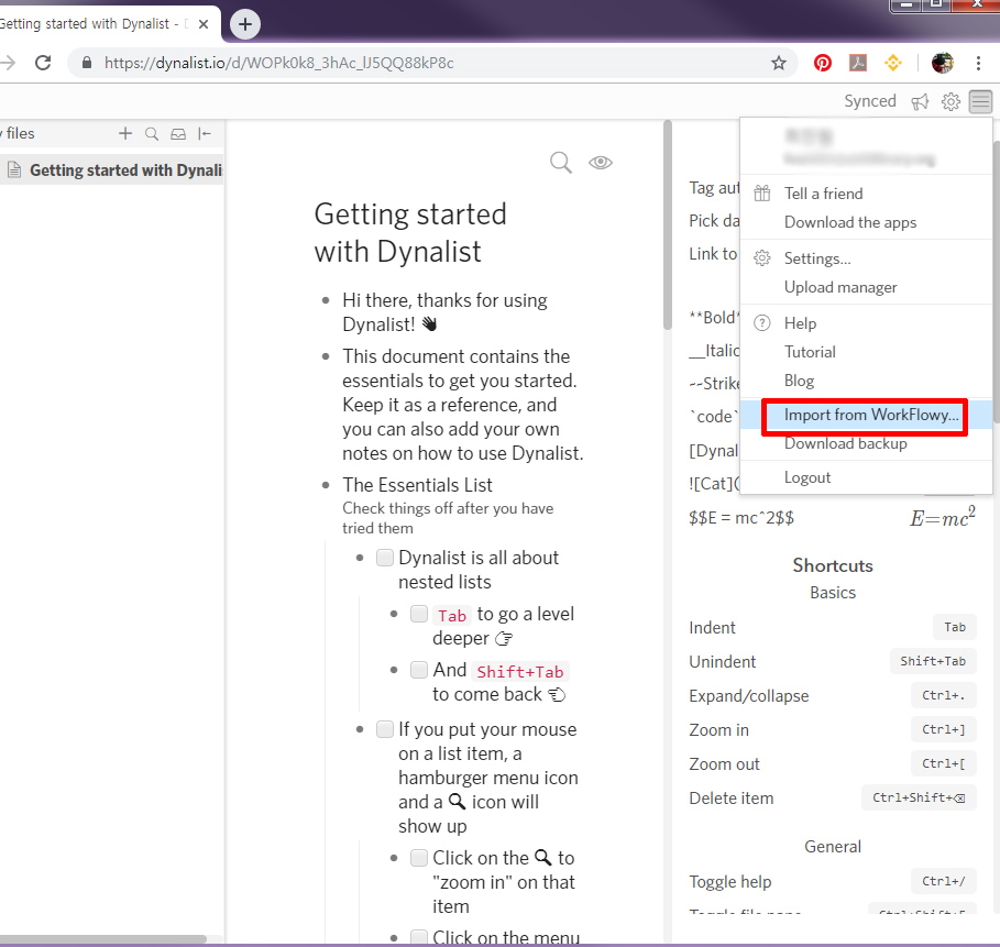 결제를 마쳤습니다. 다행이 dynalist 에는 기존의 workflowy 의 데이터를 가져오는 기능이 있습니다.