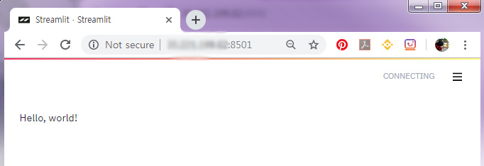 hello world 앱을 실행해보자. 다음과 같이 입력한다. GCP 사용자의 경우 8501 포트 사용이 가능하도록 방화벽 정책부터 추가한다.