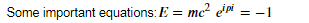 Some important equations:$E = mc^2$ $e^{i pi} = -1$
