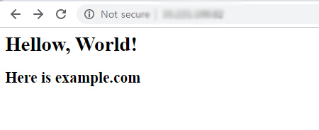 이제 아이피로 접속해보면, 앞서 작성한 내용이 표시됨을 알 수 있다. 이제 네임서버 설정을 통해 도메인 입력시 해당 내용이 표시되도록 해보자.