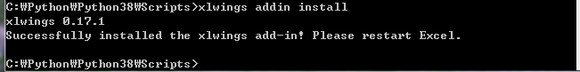 이제 엑셀 통합 파트를 설치해보자. 열려있는 엑셀 인스턴스를 모두 종료한 후 터미널에서 다음과 같이 입력한다.