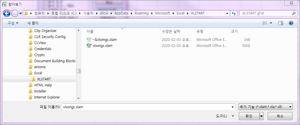 [Errno 2] No such file or directory: 'C:\\Users\\alicia\\AppData\\Roaming\\Microsoft\\Excel\\XLSTART\\xlwings.xlam'