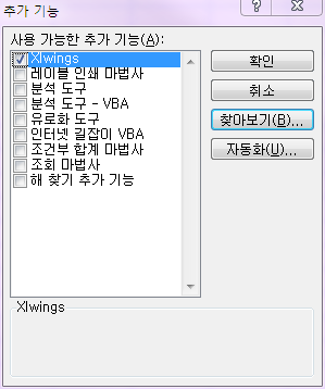 먼저 엑셀 애드인을 로드해야한다. 다음 위치에서 로드가 가능하다.