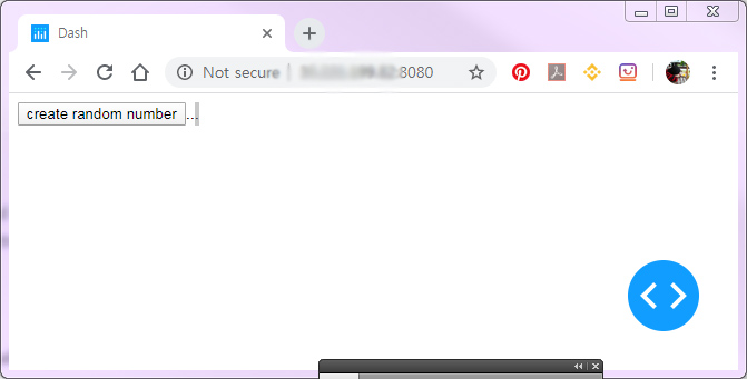 update_output 함수는 단순히 난수를 생성하고 결과로 보여주는 기능을 한다. 그리고 @app.callback 데코레이터는 버튼 클릭 이벤트를 update_output 함수로, 그리고 함수의 실행결과를 label1 요소로 묶는 기능을 한다. 이 부분이 반응성의 핵심파트다. 실행결과를 보자.