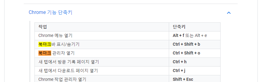 크롬 단축키 https://support.google.com/chrome/answer/157179?hl=ko