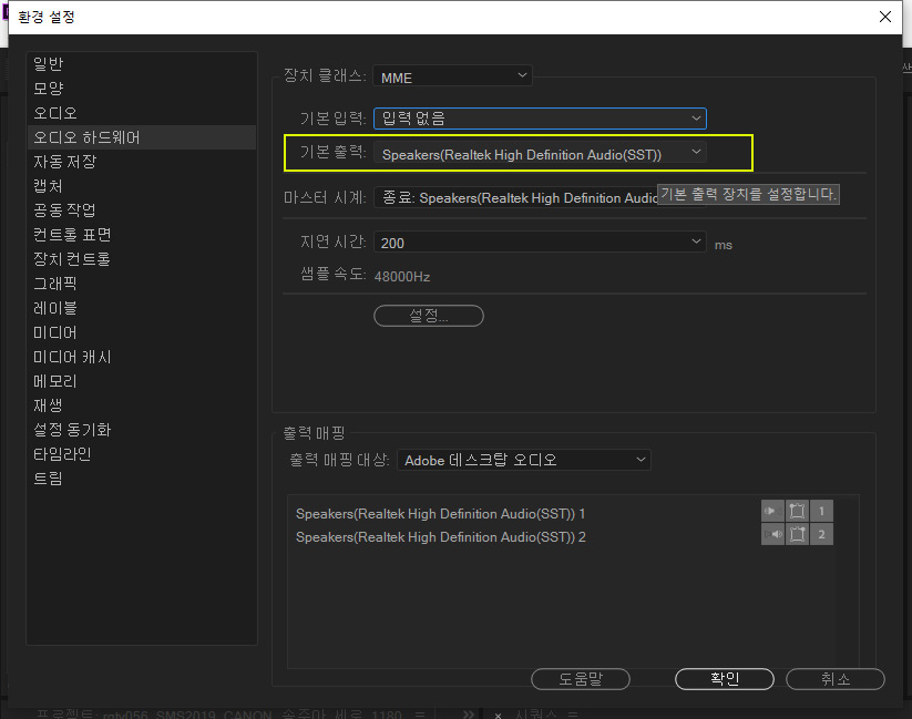 그리고 나서 기본출력에서 출력장치를 다시 선택하면 된다.