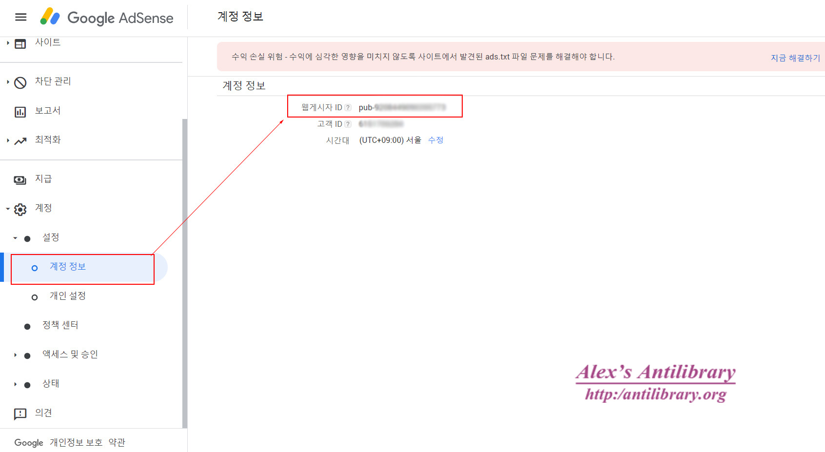 새 애드센스 연결을 눌러 애드센스 링크를 구성한다. 게시자 ID 는 위에서 보는 바와 같이 구글 애드센스 홈페이지 계정 > 계정정보에서 확인할 수 있다.