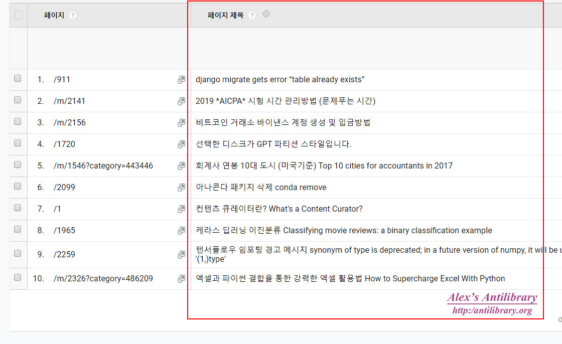 완성된 모습이다. 페이지 제목이 같이 노출됨을 볼 수 있다. 조회 기간내 고수익 페이지가 어떤 것인지를 한 눈에 파악할 수 있게 되었다.