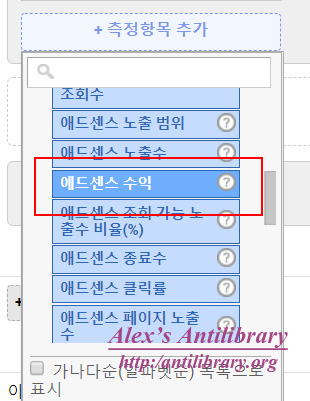 측정항목 추가를 눌러 광고 > 애드센스 수익 을 선택한다.