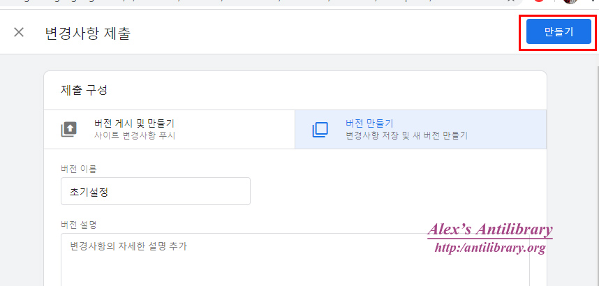 코드 붙여넣기가 끝나면, 다시 Google 태그 관리자 계정으로 돌아와 컨테이너 제출을 진행해야한다. 제출되지 않은 GTM 컨테이너는 에러를 발생 (브라우저 콘솔에서 확인할 수 있다) 시키기 때문이다.