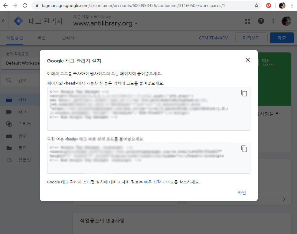 Google Tag Manager 컨테이너 코드 웹사이트에 추가하기