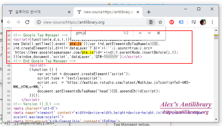 웹사이트 마우스 우측 클릭 > 페이지 소스 보기 > gtm.js 존재 여부 검색