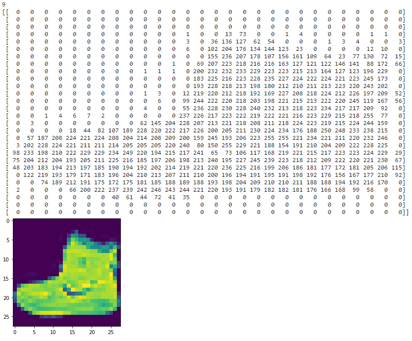 print(test_labels[0]) 을 실행하면, 9 라는 결과를 얻을 것이다.
