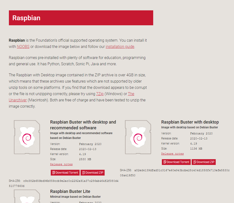 먼저 라즈비안을 microSD 카드에 설치해보자. 아래 링크에서 다운로드할 수 있다. 물론 라즈비안 외에 우분투 등의 설치옵션도 있지만, 기본적인 설치부터 해보자.