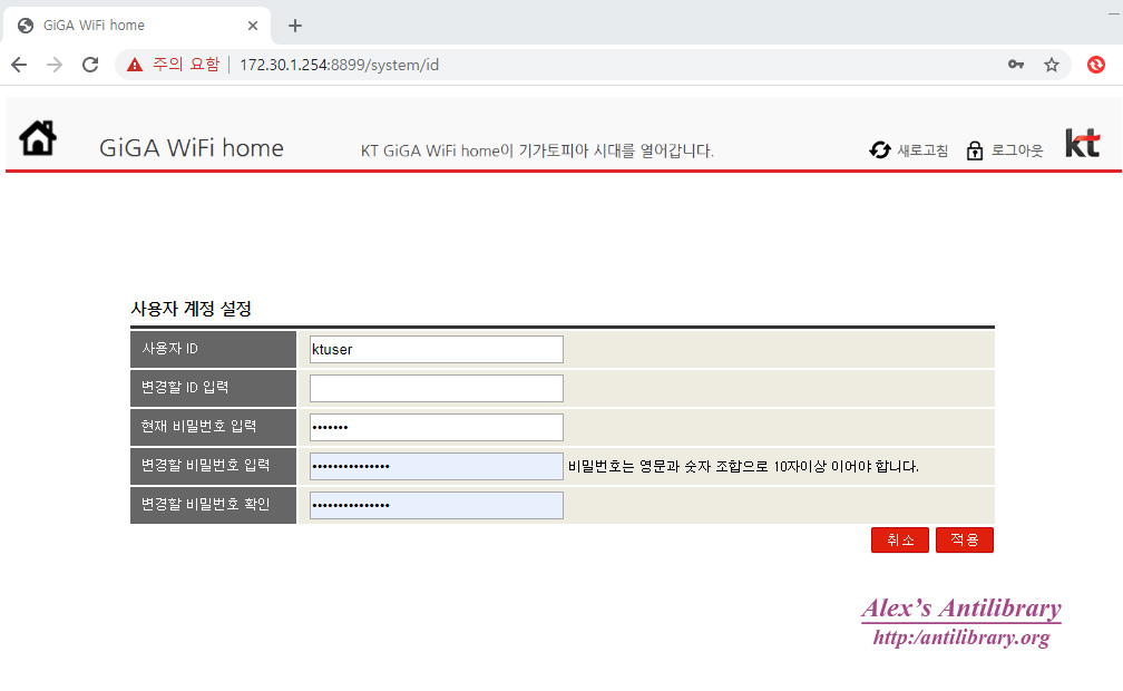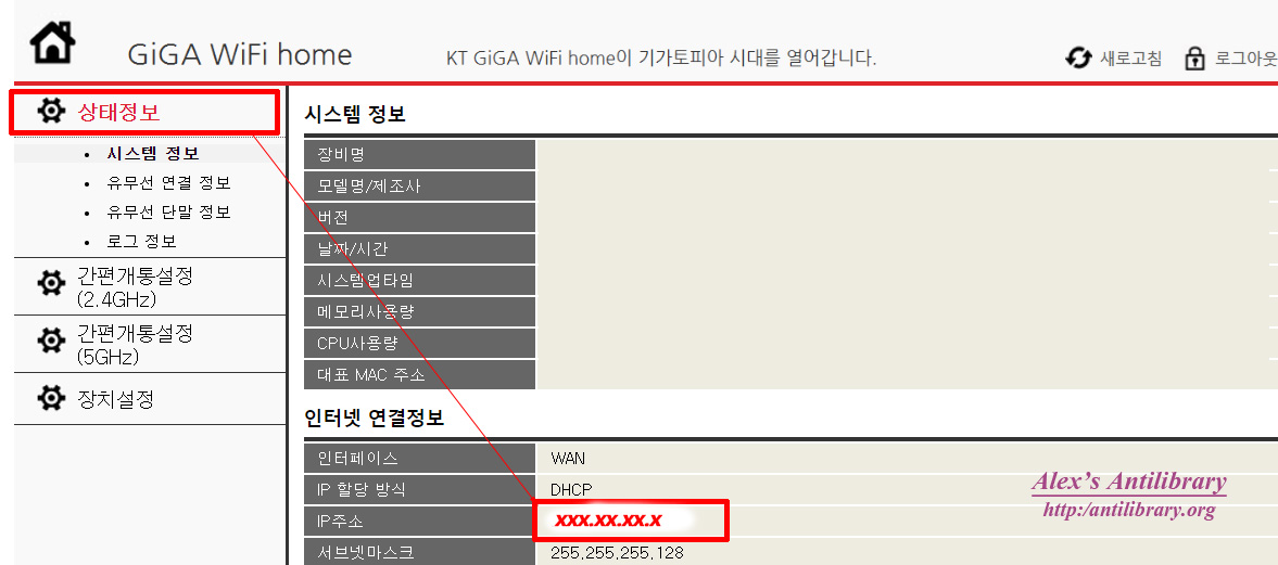 2. KT 공유기 관리자 로그인(기본 계정/비밀번호)
