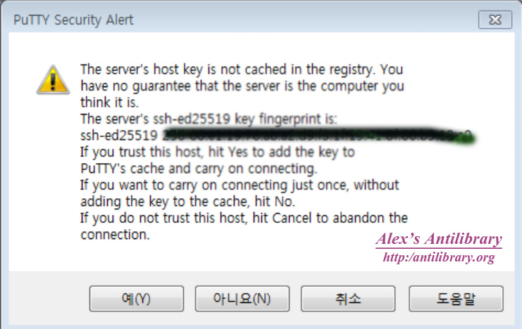 다음과 같이 security alert 윈도우가 뜨면 접속을 허용한다