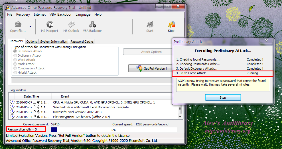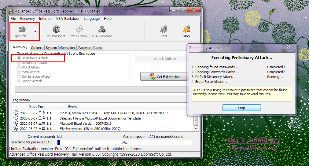 엑셀 파일 비밀번호 복구 소프트웨어를 검색해보면 대부분 유료로, 트라이얼 버전으로 테스트조차 못하는 경우가 많다. 여기서 소개하는 Advanced Office Password Recovery 는 제약은 있지만 트라이얼 버전으로 사용이 가능한 소프트웨어이다. 간단한 비밀번호 찾기에는 사용이 가능하며, 아래에서 다운로드할 수 있다.