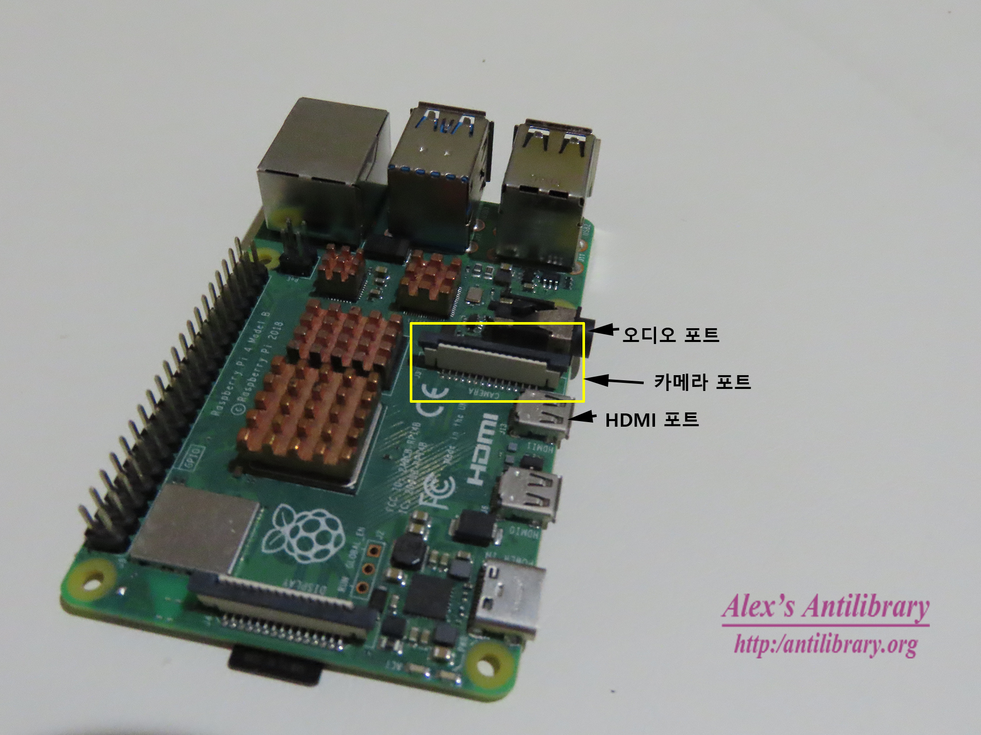카메라 포트는 아래 사진에서 보다시피 오디오 포트와 HDMI 포트 사이에 있다.