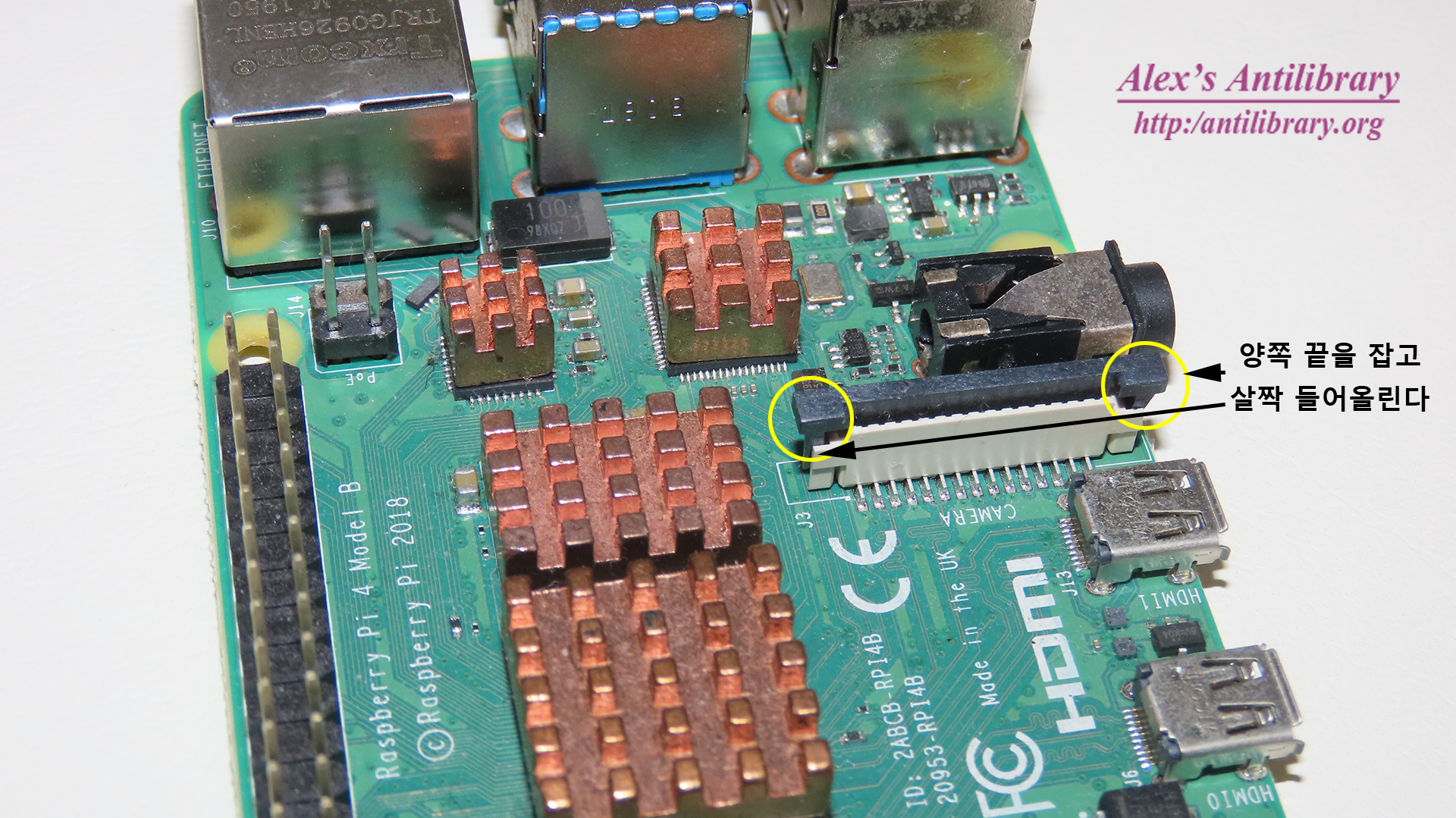 다음으로 라즈베리파이용 카메라 모듈을 해당 포트에 장착한다.