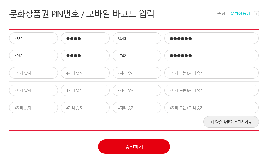 갖고 있는 실물 문화상품권의 PIN 번호를 입력한다. 핀번호는 다음에서 확인할 수 있다.