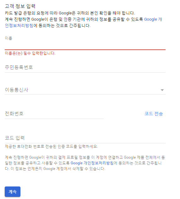 먼저 본인인증을 진행한다.