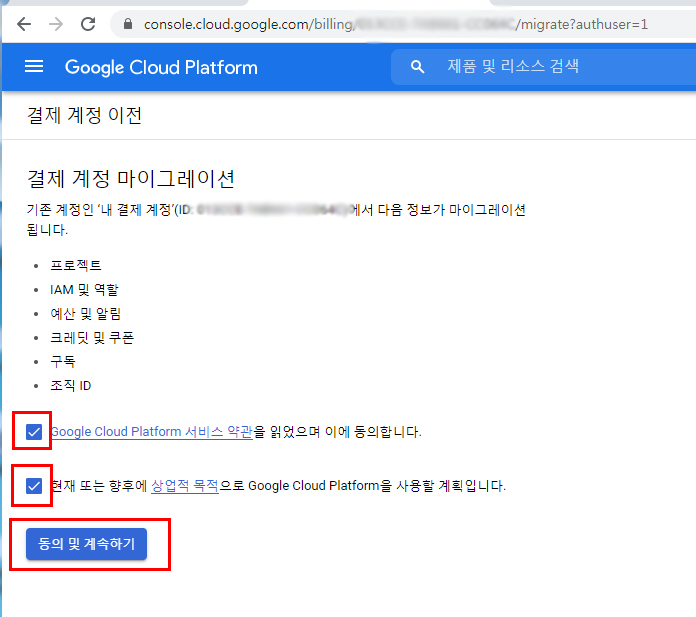약관에 동의하고, 하단의 현재 또는 향후에 상업적 목적으로 사용할 계획이라는 부분에도 체크한다. 그리고 동의 및 계속하기를 진행한다. 이 부분에 대해 확인하는 이유는 다음과 같다.