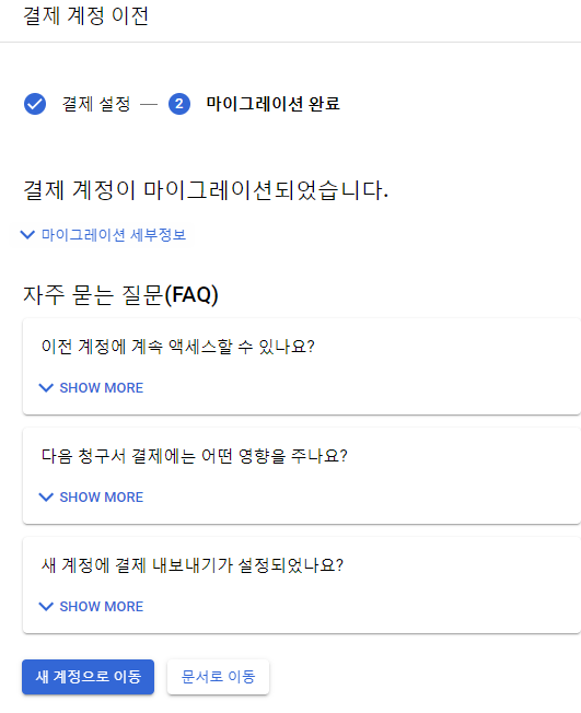 결제 계정 마이그레이션이 완료되었다.