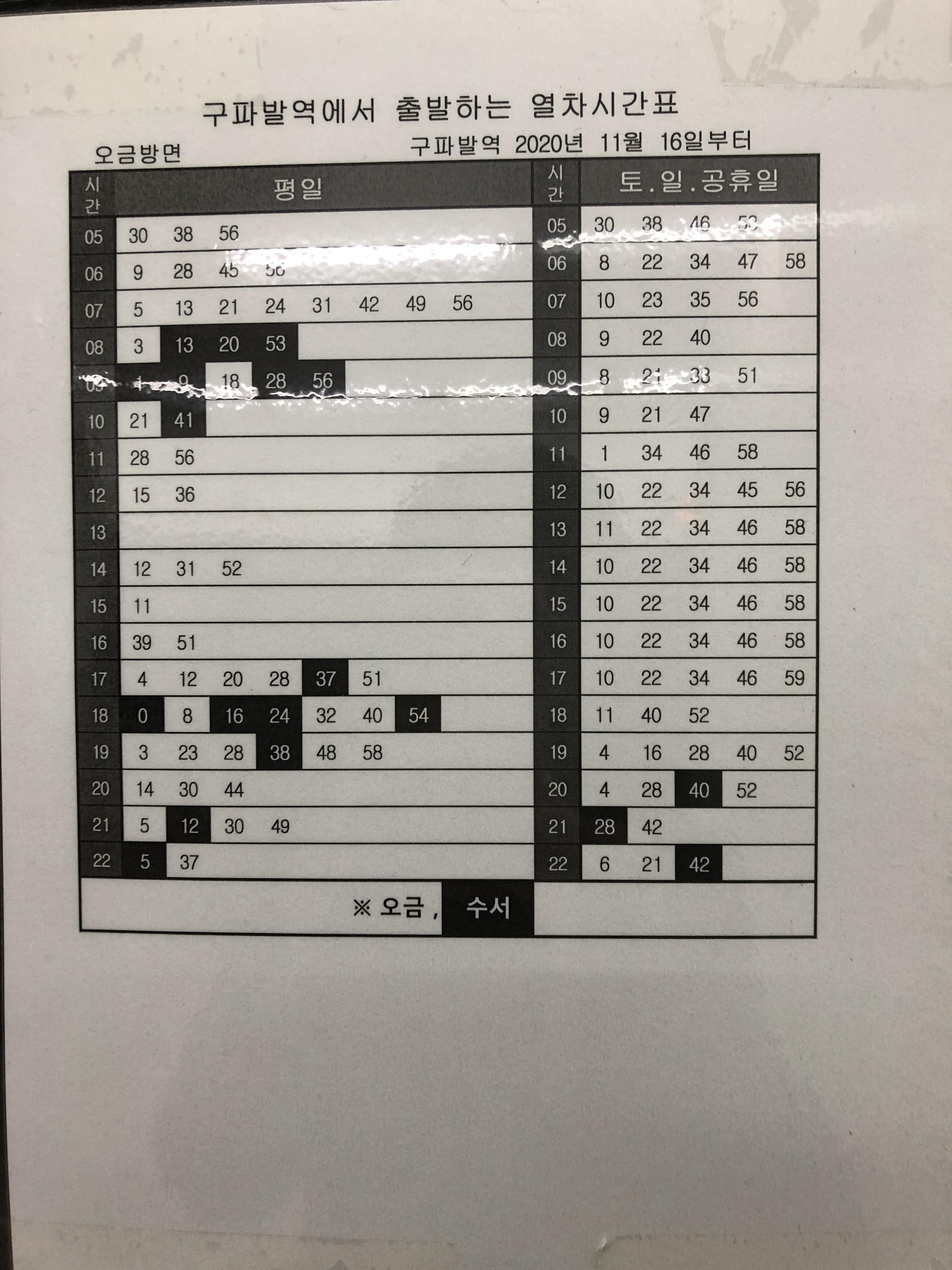 구파발역 출발 시간표 (오금방면, 2020년 11월 16일부터)