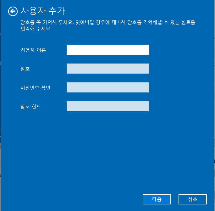 사용자 이름, 암호 등을 입력하여 계정을 추가한다.