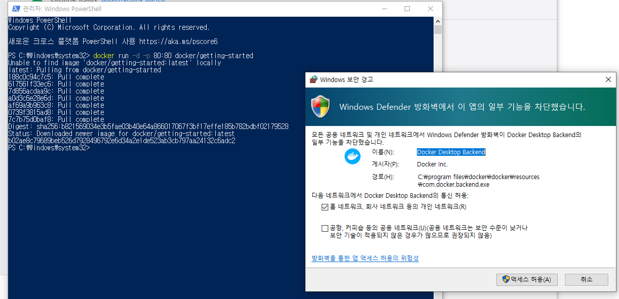 PS C:\Windows\system32> docker run -d -p 80:80 docker/getting-started