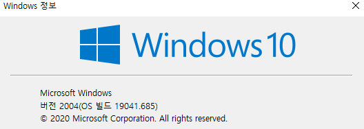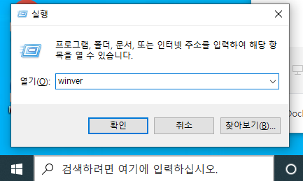 윈도우 빌드버전은 다음과 같이 확인가능하다. 윈도우키+R 을 눌러 실행 창을 실행한 뒤 "winver"을 입력하고 확인을 누르면 된다.