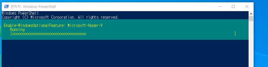PS C:\Windows\system32> Enable-WindowsOptionalFeature -Online -FeatureName Microsoft-Hyper-V -All 새로운 크로스 플랫폼 PowerShell 사용 https://aka.ms/pscore6 PS C:\Windows\system32> Enable-WindowsOptionalFeature -Online -FeatureName Microsoft-Hyper-V -All 지금 컴퓨터를 다시 시작하여 이 작업을 완료하시겠습니까?