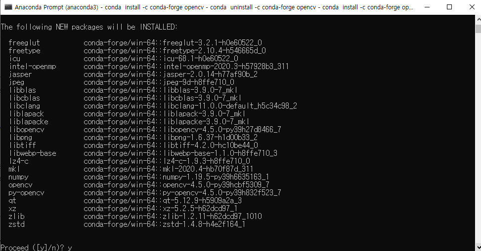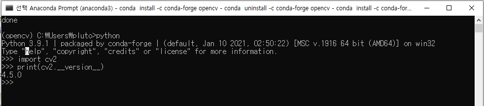 (opencv) C:\Users\pluto>conda install -c conda-forge opencv