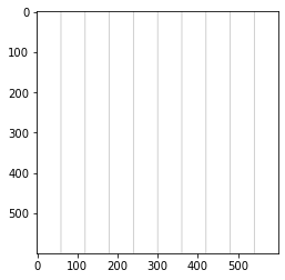 그러면 다음으로 하나가 아닌 여러개의 격자를 그려보자. 아래에서와 같이 너비(600픽셀)를 10으로 나누어서 각각의 간격을 60픽셀로 두고 수직선을 그려넣어보자.