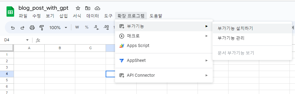 확장프로그램 > 부가기능 > 부가기능 설치하기로 이동한다.