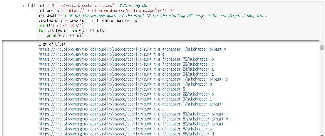 Internal Revenue Codes 를 크롤링 및 스크랩한다.