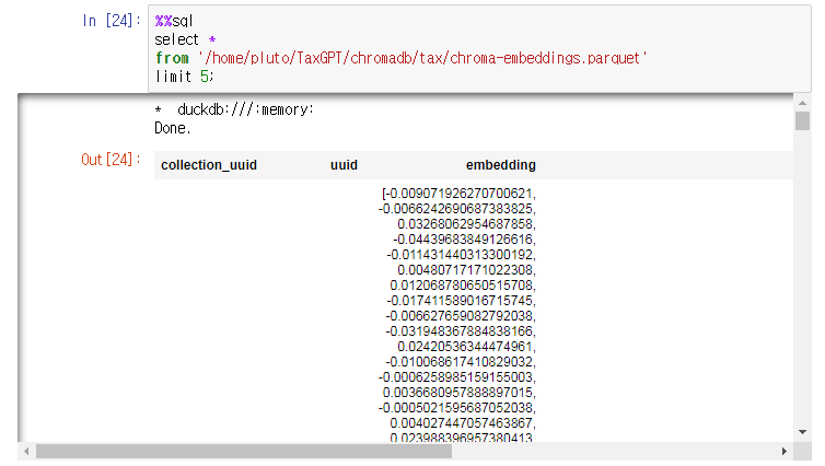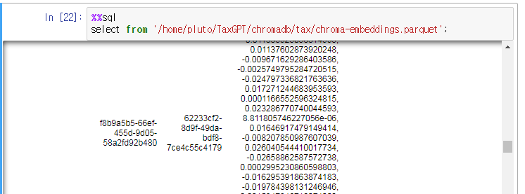 그리고 마지막으로 “chroma-embeddings.parquet” 샘플을 살펴보자.