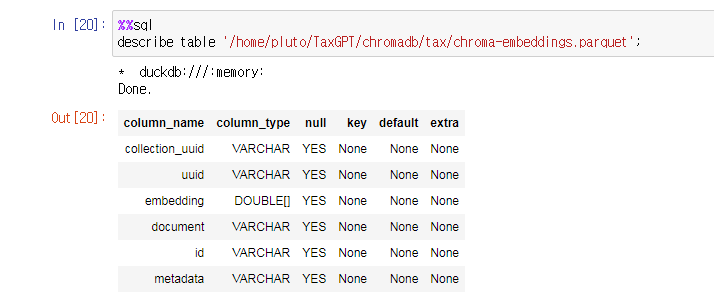 chroma-embeddings.parquet 의 구조는 다음과 같다.