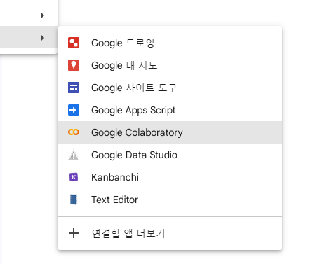 구글드라이브에 py 파일을 저장해두고 colab 환경에서 사용할 예정이므로, 구글드라이브 특정 폴더에 다음과 같이 Google Colaboratory 파일을 만든다.