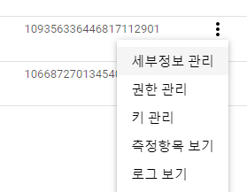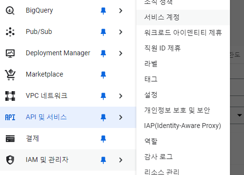 - IAM & 관리 > 서비스 계정 메뉴 이동