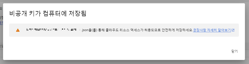 - 서비스 계정 키(JSON) 생성 후 다운로드