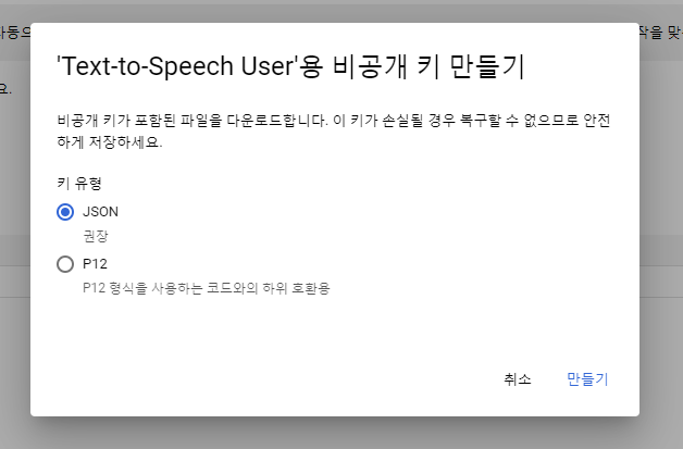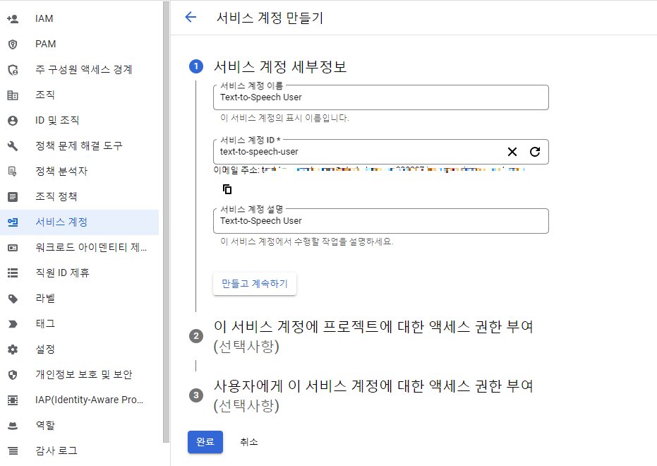 인증이 완료되면 Google Cloud TTS API를 사용할 준비가 끝납니다.