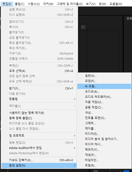 작업중 성능저하를 느끼고 해당 기능이 현재 필요없다고 판단되더라도 당장은 Media Intelligence 비활성화할 방법은 없는 것 같다. 먼저 환경설정 > AI 모델 탭으로 이동해봐도 생성형 확장에 대한 설명만 있을 뿐 비활성화 기능은 보이지 않는다.
