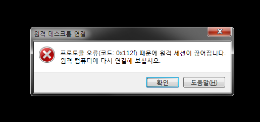"프로토콜 오류 (코드: 0x112f)"는 Windows 원격 데스크톱(RDP, Remote Desktop Protocol) 세션 도중 발생하는 통신 오류 중 하나로, 일반적으로 클라이언트와 서버 간의 RDP 프로토콜 처리 과정에서 문제가 생겼을 때 세션이 강제로 종료되며 나타납니다.