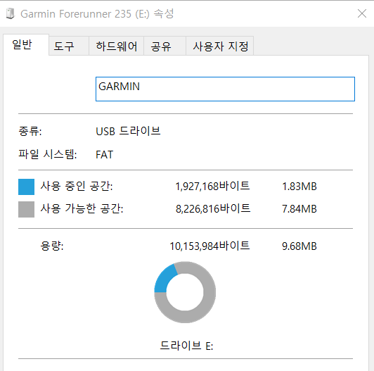 먼저 충전용 케이블을 PC 와 가민 포러너 235 에 연결한다. 잠시 후 다음과 같이 가민 235 가 탐색기에 잡히는 것을 볼 수 있다.