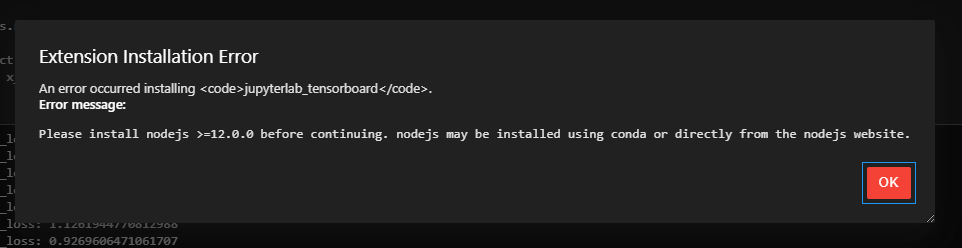 An error occurred installing <code>jupyterlab_tensorboard</code>.