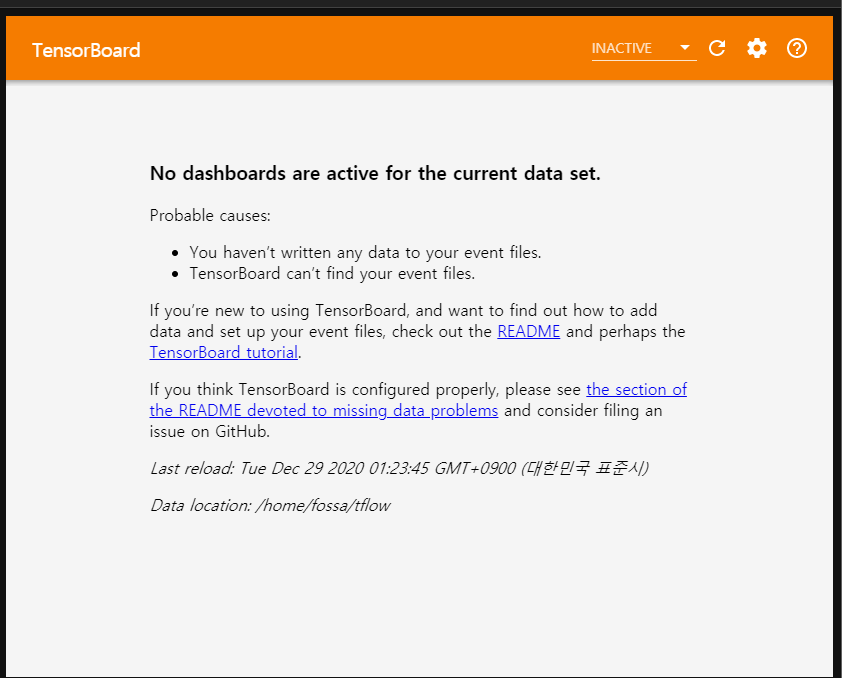 텐서보드가 정상 작동함을 이제 확인할 수 있다.