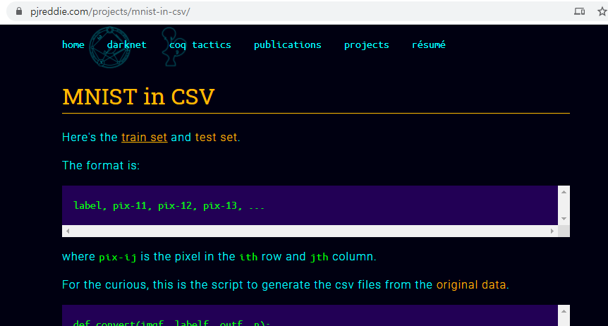 실습에 필요한 데이터를 다운로드 받는다. MNIST in CSV에서 train_set 및 test_set CSV 파일을 다운로드 받을 수 있다.