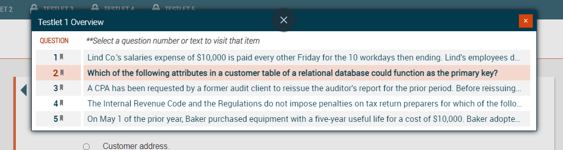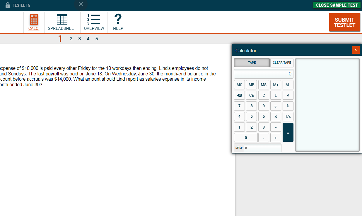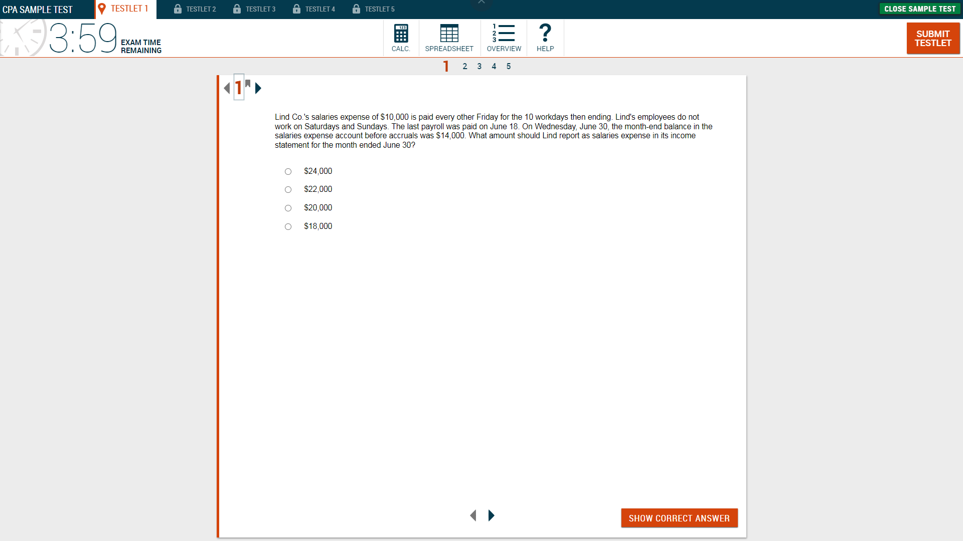 - 채점되지 않음 : 샘플 테스트는 점수가 매겨지지 않으며, CPA 시험 준비 상태를 평가하는 도구로 사용되지 않습니다.